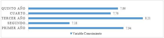 Es importante destacar, que más interés despiertan en los estudiantes son marketing, administración y logística, por ello se vuelve esencial destacar las actividades realizadas en estas áreas por parte del personal especializado en las mismas. En el caso de la variable conocimiento, el tercer año presenta un mayor interés por la ciencia, siendo un momento crucial en la vida estudiantil de los universitarios, ya que es el punto donde comienzan a vincularse con la vida profesional.