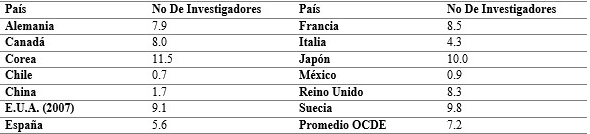 De acuerdo con la OCDE, México se encuentra en el lugar 42 en cuanto a recursos destinados a ciencia y tecnología, con su inversión de 0.4% del Producto Interno Bruto, lo que, de acuerdo con este organismo, sitúa al país en el último lugar de los países miembros del organismo (Rivas & Aragón, 2003).