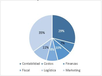 El último de los aspectos demográficos corresponde a las áreas de interés de los alumnos, aquí se presentaron doce opciones: Auditoría, Competitividad, Comportamiento Organizacional, Contabilidad, Costos, Finanzas, Fiscal, Logística, Marketing, Recursos Humanos, Teoría Administrativa y TIC´S. Se encontró que solamente 6 áreas son las de mayor interés entre la población (gráfica 3).