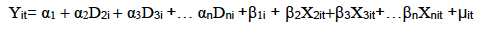 The model that we will follow is the fixed effect, establishing a ratio of interception by differential intersection dichotomous variables, with the journey across weighting option, using the following equation: