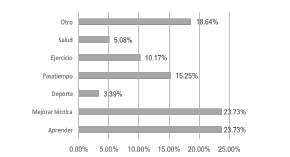 Al tener los habitantes una percepción positiva sobre la natación y el interés por inscribirse a los cursos del CEA indica que hay consumidores para el servicio que ofrece. También el nivel económico determina que los interesados en inscribirse al CEA les permiten pagar el costo de la inscripción y mensualidades de las clases. Otro aspecto que permite tener inscritos es la accesibilidad de los costos de inscripción y mensualidad comparándolos con los de la competencia. Y finalmente, la ubicación del CEA contribuye a que haya más inscritos, pues es uno de los factores determinantes para acudir a las clases. A continuación, se presentan los resultados de la encuesta realizada (Gráficas 1,2,3,4,5,6,7 y 8).