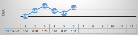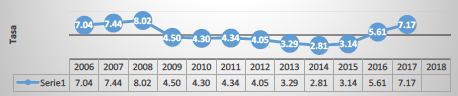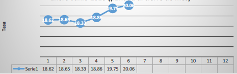 Fuente: Elaboración propia con cifras proporcionadas por el Banco de México e Instituto Nacional de Geografía y Estadística. http://www.inegi.org.mx/sistemas/bie/ (consultado en junio10 de 2018) Ruta temática: Financiero y bursátil > Indicadores financieros y bursátiles > Tasas de interés bancarias > Tasa de interés interbancaria de equilibrio (TIIE) >A 28 días (al cierre del mes)