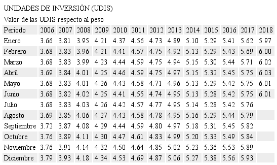 UNIDADES DE INVERSIÓN (UDIS) Enero-Junio 2018