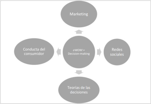 La figura 11 muestra las principales fuentes del conocimiento del eWOM y el proceso de toma de decisiones del consumidor. Los resultados demuestran que se encuentran relacionados con el marketing, conducta del consumidor, redes sociales y teoría de las decisiones.