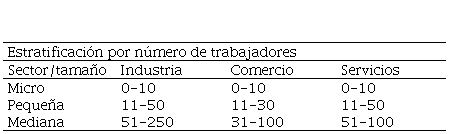 En México, el criterio utilizado para la definición del tamaño de las empresas es el que utiliza el INEGI y que proviene de la Ley Para el Desarrollo de la Competitividad de la Micro, Pequeña y Mediana Empresa (Cámara de Diputados del H. Congreso de la Unión, 2015). Utiliza como base de clasificación el sector en que se desenvuelve la empresa y el número de empleos generados (tabla 1). La ley considera a las microempresas como aquellas que cuentan con hasta diez personas en su planta laboral, independientemente del sector en el que efectúan sus operaciones. Es este el criterio de clasificación utilizado para la presente investigación.