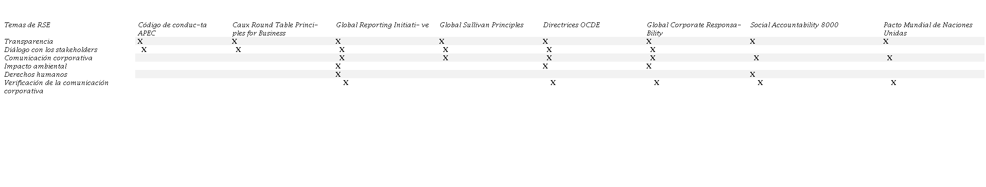 Sin embargo, tal como se aprecia en la tabla 1, la CEPAL marca una falta de maduración de la RSE en empresas mexicanas que no han logrado establecerse firmes en acciones claves en el aspecto socialmente responsable. La tabla muestra los rubros que los organismos internacionales base en temas de responsabilidad social deberían por esencia cumplir y que no los cubren al 100%. Dichos rubros se encuentran integrados por transparencia, diálogo con los stakeholders comunicación corporativa, impacto ambiental, derechos humanos y verificación de la comunicación corporativa (Vargas, 2006). Aunado a lo anterior, un estudio realizado para conocer el panorama de la RSE en México arrojó como resultado que un 85% de las personas opinan que la responsabilidad social se encuentra inmadura en el país y que no ha sabido desarrollarse como lo plantea la teoría (Aguilar, 2013).