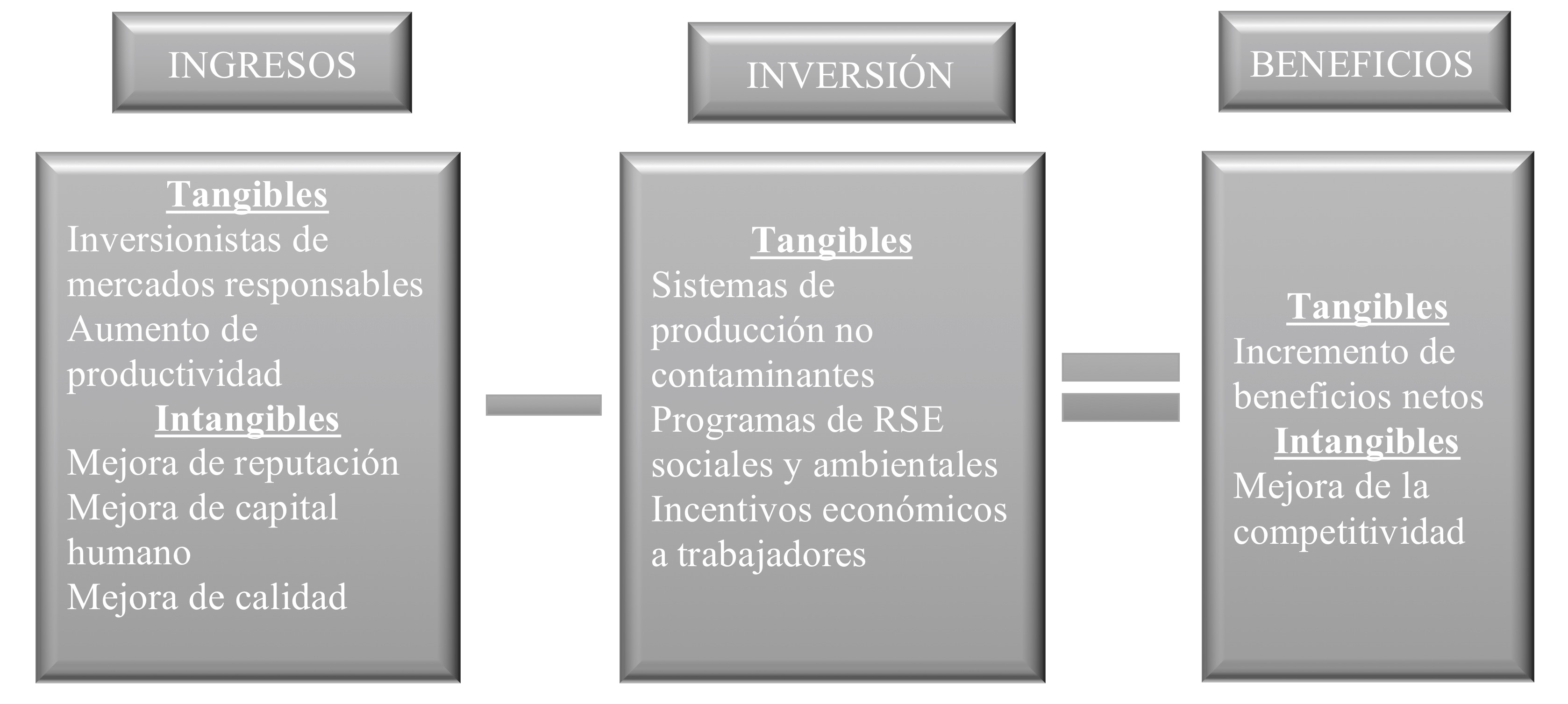 Resulta imperativo determinar la conveniencia dentro de la parte económica de la introducción de acciones socialmente responsables como parte de la organización, y qué puede obtenerse a través de la fórmula planteada en la figura 1.
