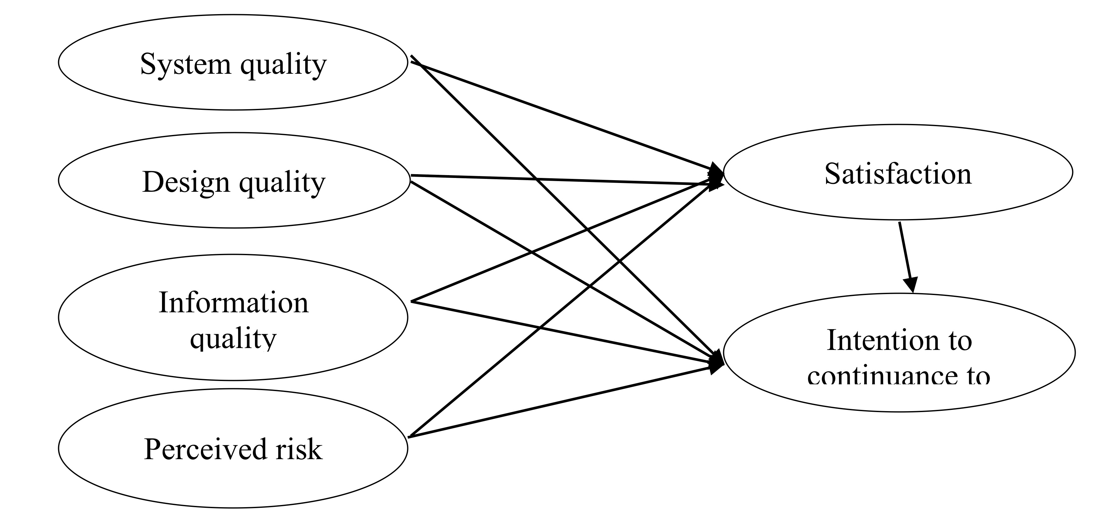 Design quality (0.282, p = 0.010), information quality (0.283, p = 0.014), and system quality (0.192, p = 0.019), are positively and significantly related to Satisfaction. Therefore, Hypotheses 1, 3 and 5 are supported, respectively. Previous studies (Justitia et al. 2019; Olubusola 2015) tested these hypotheses.