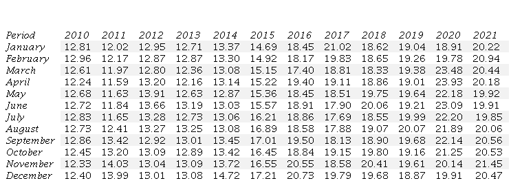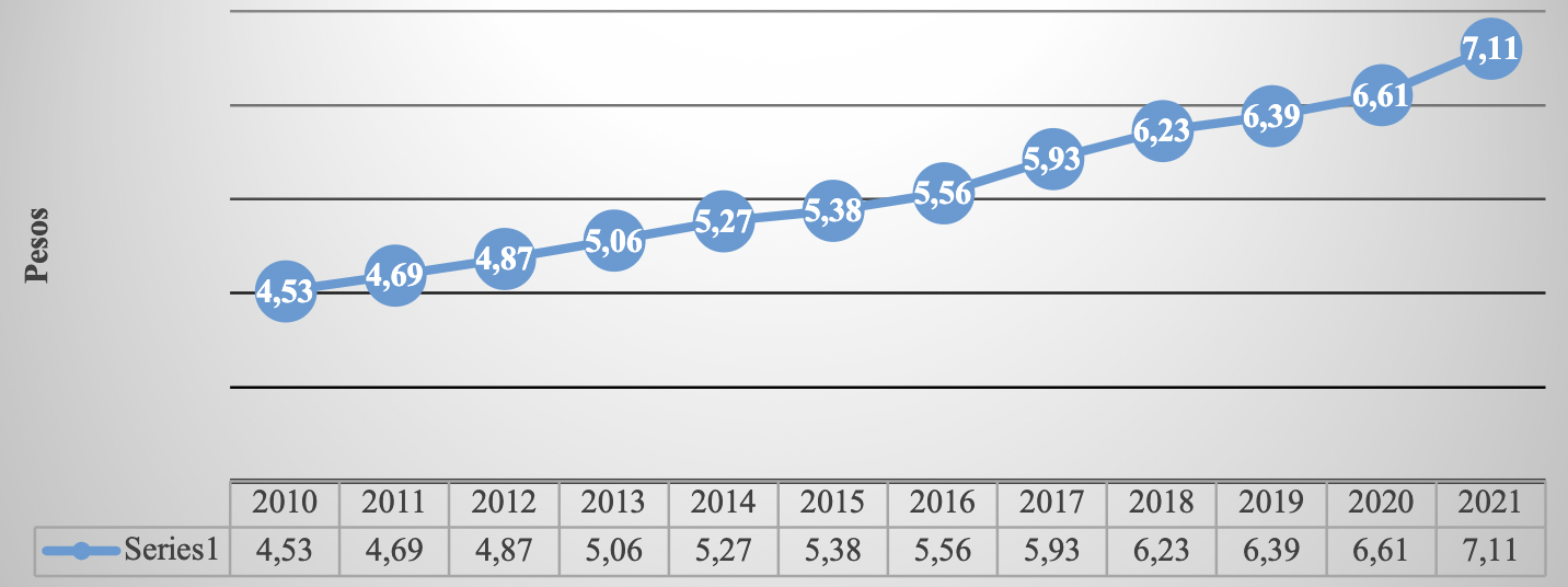 Born in 1995 and reflecting changes in consumer prices, measures the general increase in prices in the country. It is calculated fortnightly by the Bank of Mexico and INEGI (2021). INPC is published in the Official Gazette of the Federation on the 10th and 25th of each month. The reference period is the second half of December 2010.