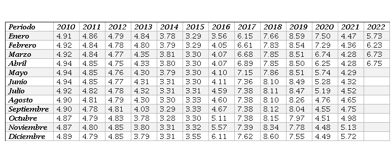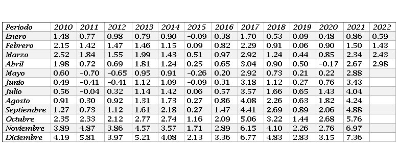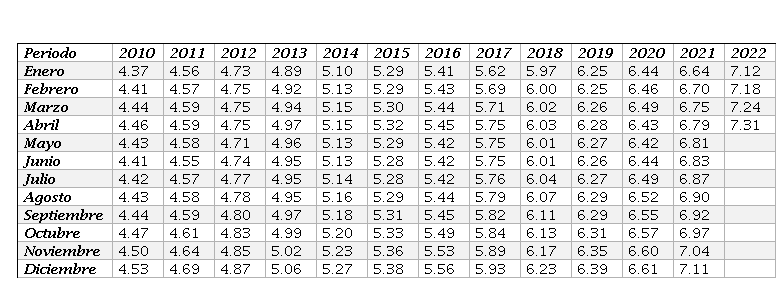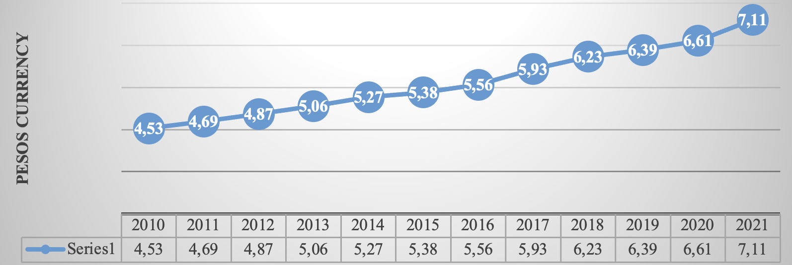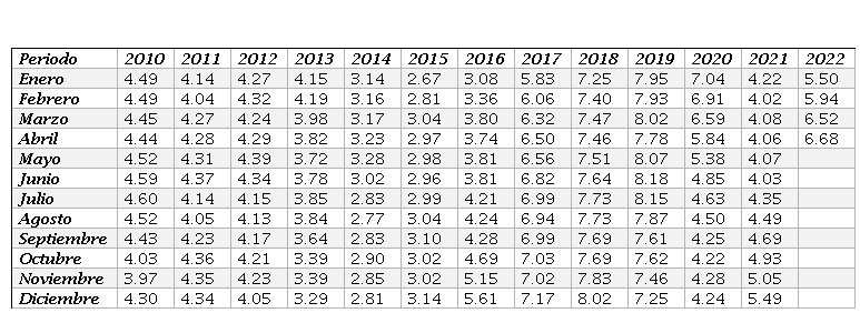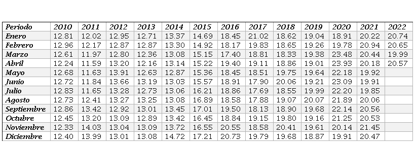 Born in 1995 and reflecting changes in consumer prices, measures the general increase in prices in the country. It is calculated fortnightly by the Bank of Mexico and INEGI (2021). INPC is published in the Official Gazette of the Federation on the 10th and 25th of each month. The reference period is the second half of December 2010.