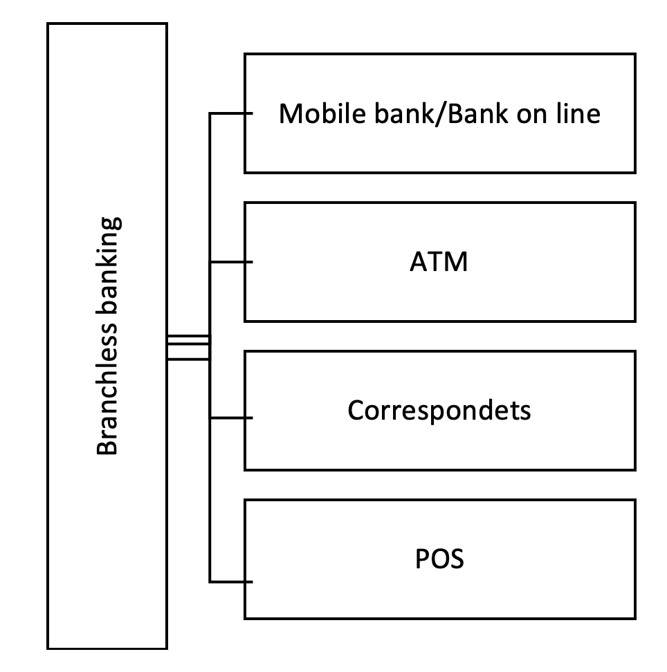 Branchless banking (Graph 6) is a concept that brings together the main innovations in access points outside the bank branch. The first article that is recorded and that addresses the subject of banking services outside the bank branch is the one carried out by Morison and Frazer (1982), who analyze banking services and the future of US retail banking, among which they mention the increase in bank outlets outside the branch. According to Marshall and Richardson (1996), the term refers to providing banking services through information and communications technology (ICT) to provide retail services outside bank branches.