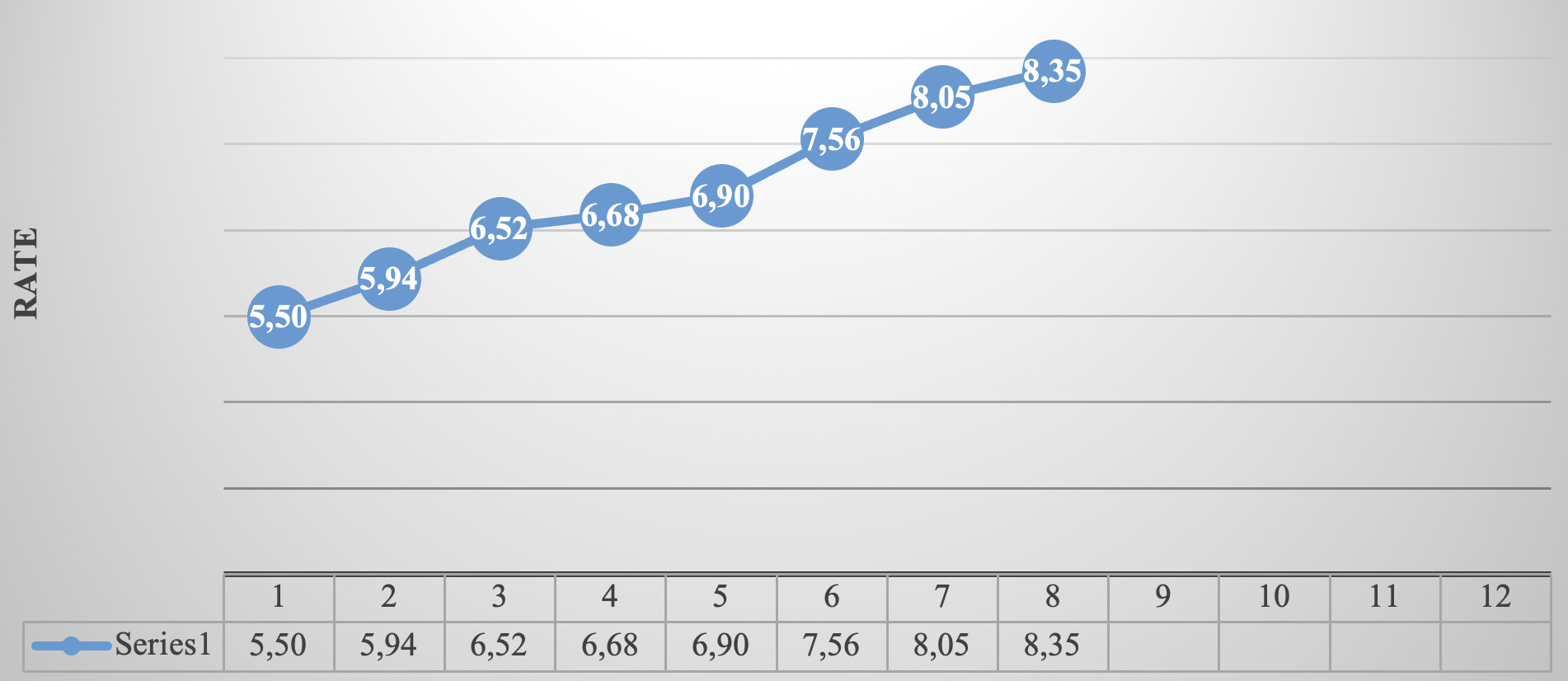 | Nov. | 4.50 | 4.64 | 4.85 | 5.02 | 5.23 | 5.36 | 5.53 | 5.89 | 6.17 | 6.35 | 6.60 | 7.04 |  |