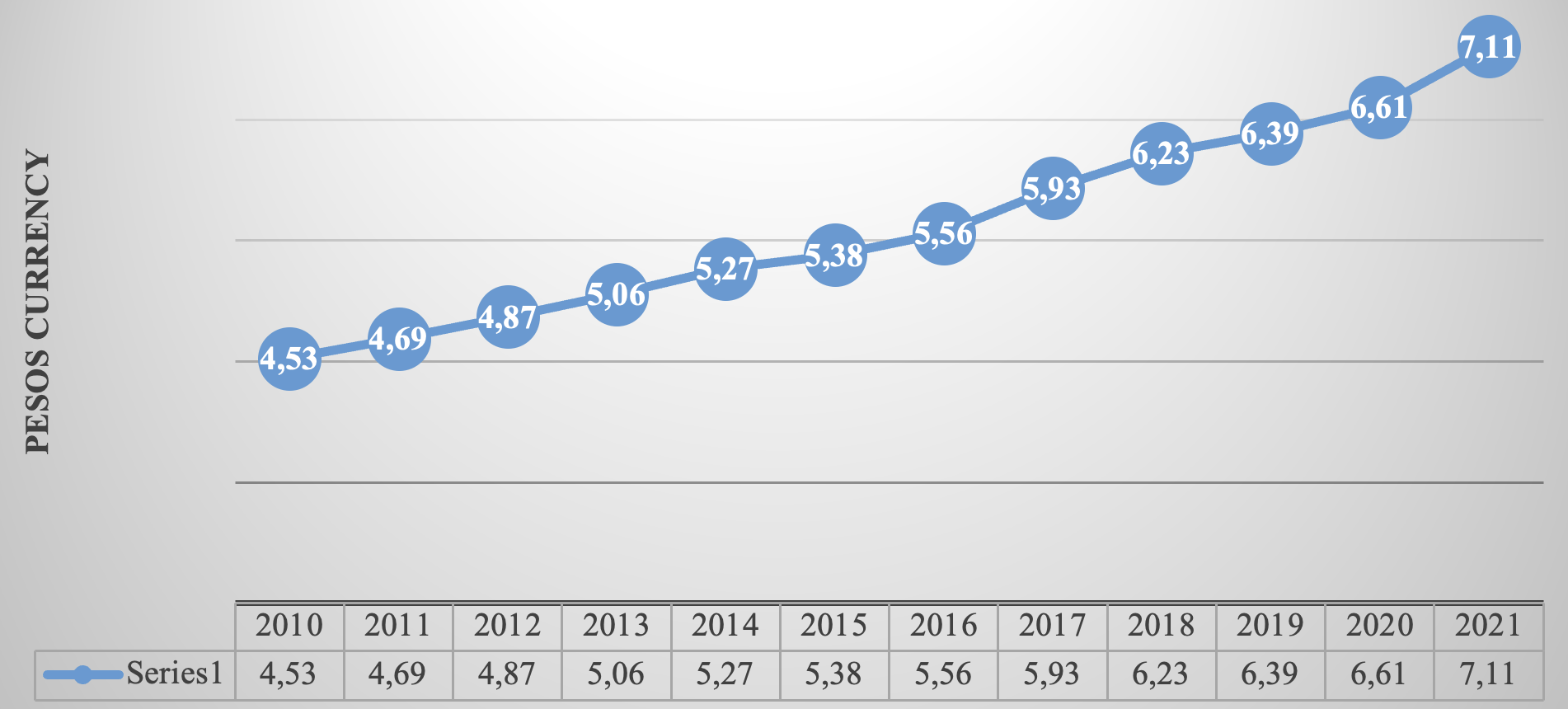 Source: Own elaboration (BANXICO, 2022).  https://www.banxico.org.mx/SieInternet/consultarDirectorioInternetAction.do?sector=6&accion=co nsultarCuadro&idCuadro=CF102&locale=es NOTE: Exchange rate FIX by The Banco de México, used for settle obligations denominated in foreign currency. Quote at the end