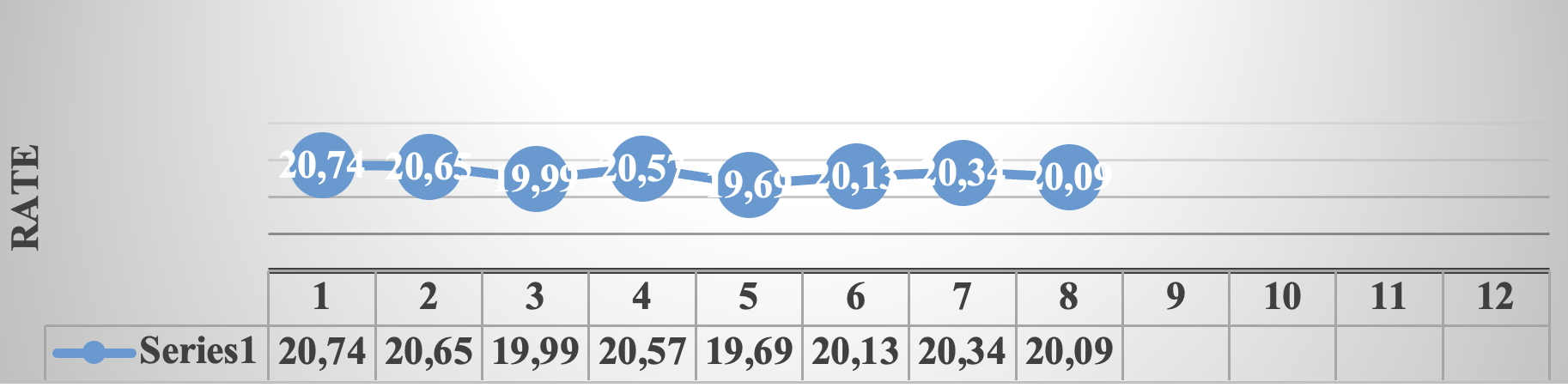 | Agosto | 12.73 | 12.41 | 13.27 | 13.25 | 13.08 | 16.89 | 18.58 | 17.88 | 19.07 | 20.07 | 21.89 | 20.06 | 20.09 |