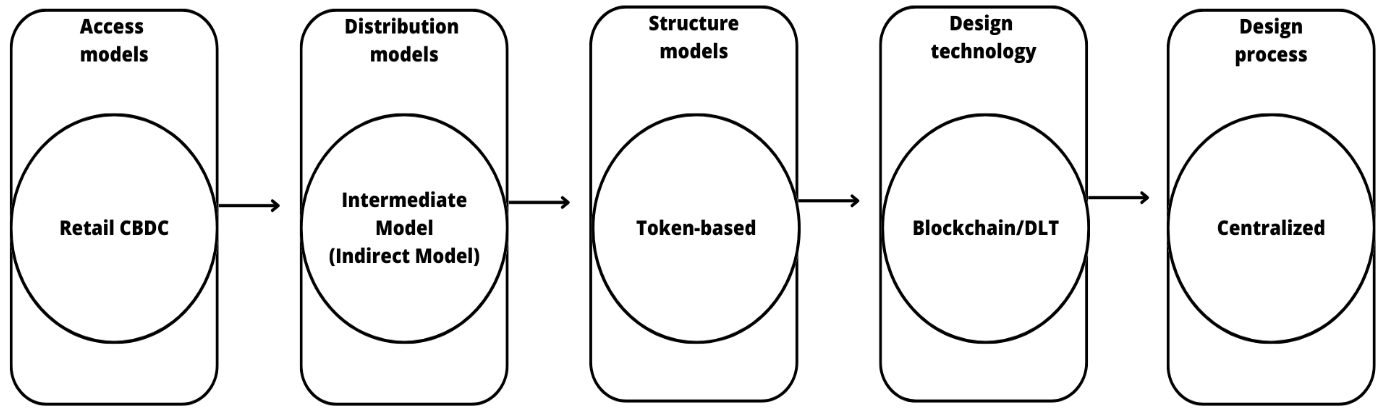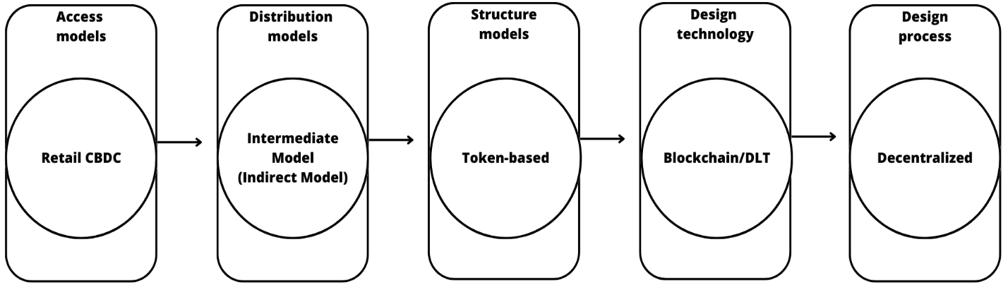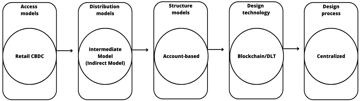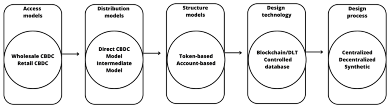 Rodríguez (2022) mentions that CBDCs have access, distribution, and structure models, which must be implemented for proper functioning. He also comments that for each of these models, there are different architectures and features. However, it can be observable in Figure 1.