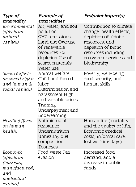 The need for more information in quantifying externalities is an information asymmetry problem leading to food market failure. The social costs associated with food production are not quantified, let alone reported to consumers. Therefore, it is necessary first to know the externalities produced in food systems to quantify them and then to communicate them.