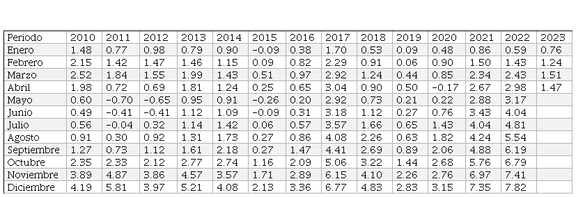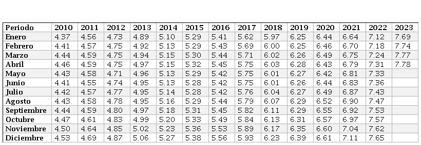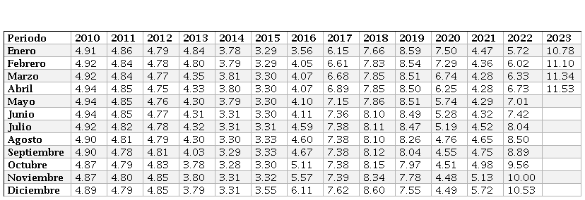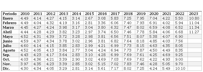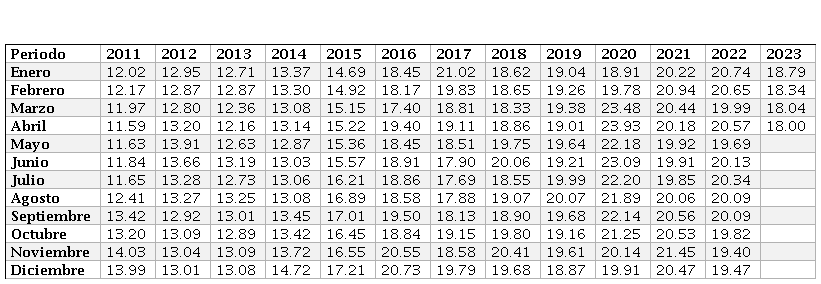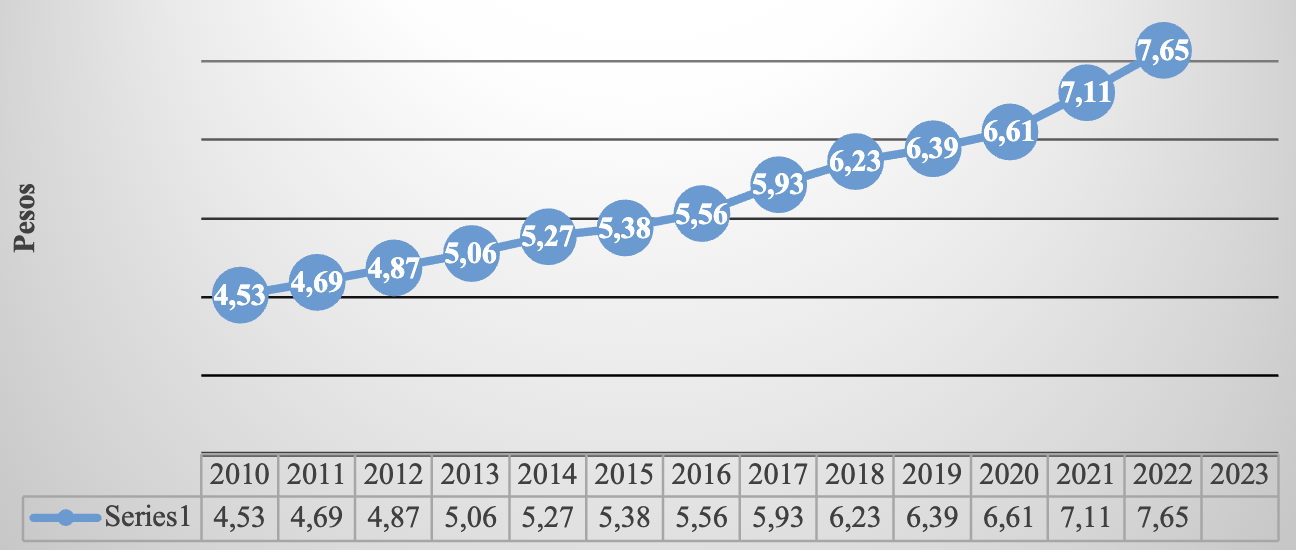 Source: Own elaboration (BANXICO, 2023). https://www.banxico.org.mx/SieInternet/consultarDirectorioInternetAction.do?sector=18&accion=c onsultarCuadro&idCuadro=CF101&locale=es