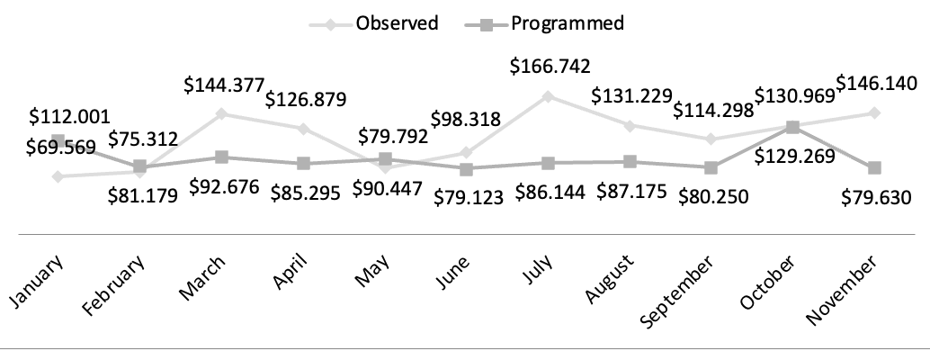 As shown in Graph 6, another factor that has contributed to the macroeconomic stability of Mexico is oil revenues, which have benefited from the war between Russia and Ukraine, as the former is one of the leading exporters of oil. Oil worldwide has led to an increase in the price of a barrel derived from the sanctions imposed on Russia by the West. Therefore, there is a marked difference between what was programmed and what was observed, granting the Mexican coffers an additional income of 280,436 million pesos in that period alone.