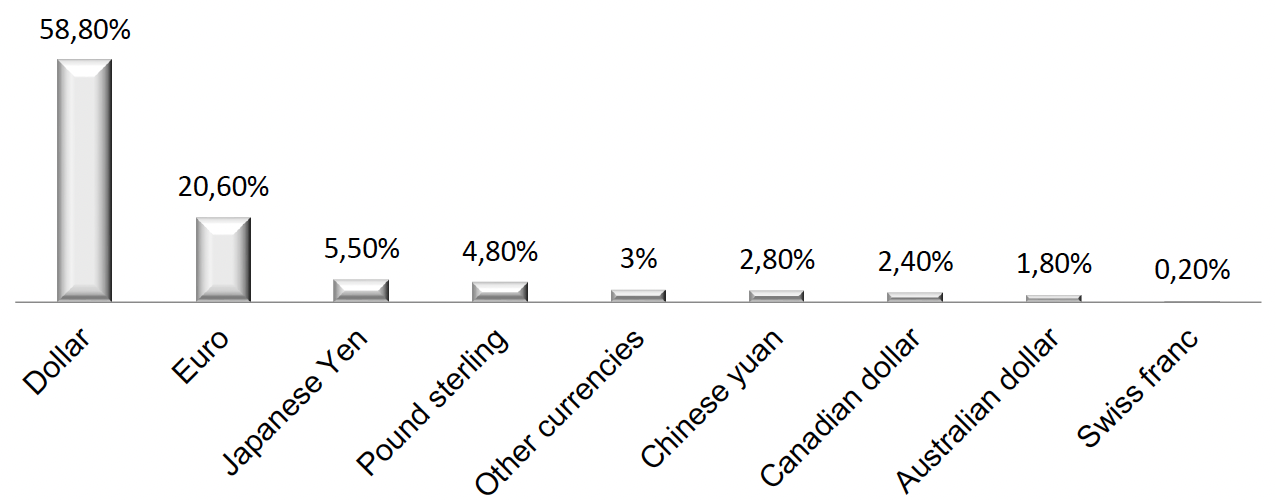 Marín, J. (5 de 10 de 2022). Las monedas de reserva más usadas en el mundo. EOM. Recuperado el 25 de 02 de 2023, de https://elordenmundial.com/mapas-y-graficos/las-monedas-de-reserva-mas-usadas-en-el-mundo/?nab=0