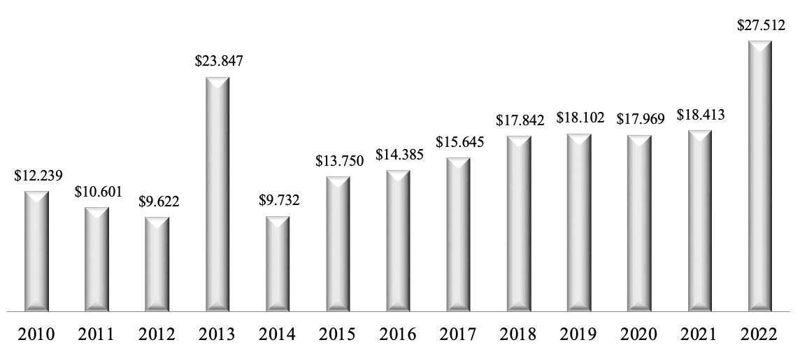 Foreign Direct Investment in the first half of 2022 was 49.2% higher than the first half of 2021 (Graph 3). However, this percentage considers the merger of Televisa and Univision and the restructuring of Aeromexico for $6,875 million. Without considering these atypical operations, FDI increased by 12% compared to the previous year's first half. It is worth mentioning that in 2013 there was a significant increase due to the sale of Grupo Modelo, which was close to $13,000 million (López, 2022). All of this denotes that Mexico, given foreign investors, is attractive for investment and its strategic position. It is why Tesla invested $5,000 million in 2023 to develop a Gigafactory in Nuevo León, Mexico.
