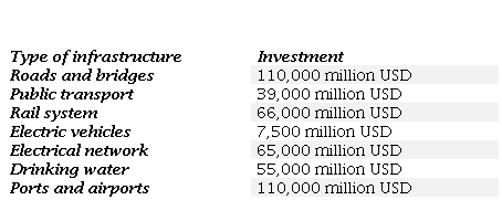 As seen in Table 6, the most important investments are the modernization of roads and bridges, followed by ports and airports. These are characterized by obsolete infrastructure that hinders the correct management of the supply chain. Analysts estimated that the US infrastructure plan approved by the US Senate will have a positive impact on the Mexican economy (Castañares & Hernández, 2021).