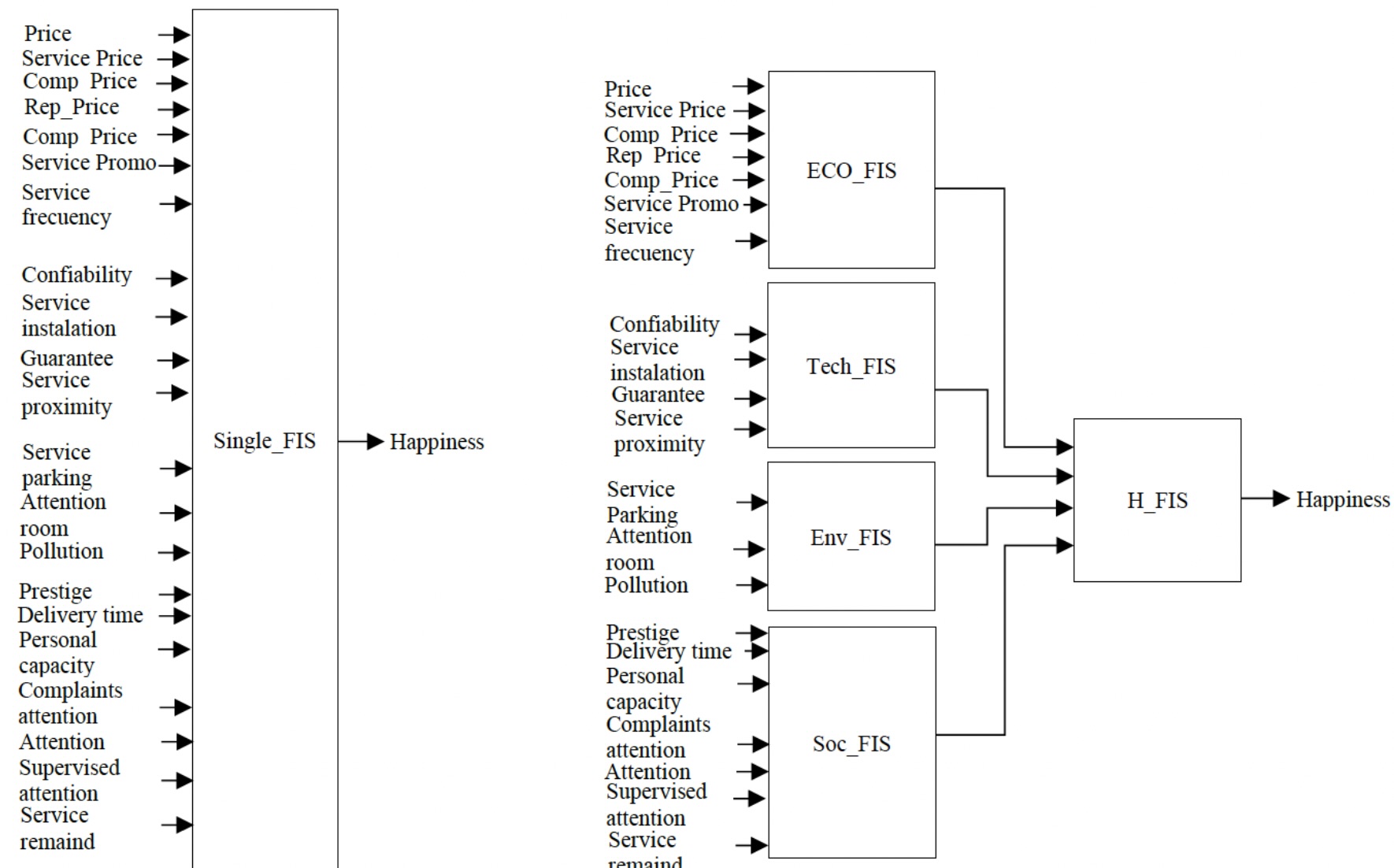 Based on the findings from the previous stages, the fuzzy expressions of the factors are employed to construct two distinct models to establish a correlation between the driving forces and customer happiness.