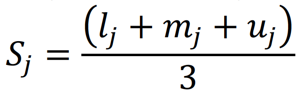 From the fuzzy numbers of the factors and using equations (2) to (5), the main indices of the fuzzy set were obtained for each factor (lj, mj., uj.), as well as the fuzzy average (Sj), wherw Figure 3 displays the fuzzy number of a factor with its three linguistic levels