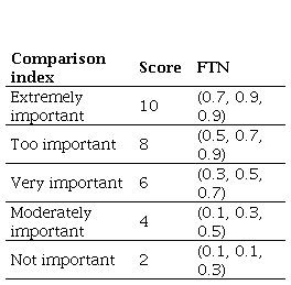 The Delphi method is utilized in a fuzzy universe (FDM) to determine the factors that influence consumer happiness. This is achieved by using fuzzy sets of three linguistic variables: "low," "medium," and "high" importance, as indicated by the findings of the initial stage. The FDM was used in this study in the following form: Initially, the interviewers assessed the elements using a modified Saaty linguistic scale ranging from 1 to 10 (Table 2). The outcomes are then provided based on each linguistic variable's fuzzy triangular number (FTN) (Chaturvedi, 2010).