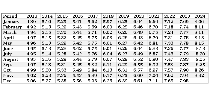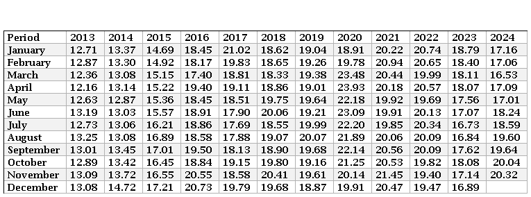 Source: Own elaboration (BANXICO, 2024). https://www.banxico.org.mx/SieInternet/consultarDirectorioInternetAction.do?sector=18&accion=c onsultarCuadro&idCuadro=CF101&locale=es