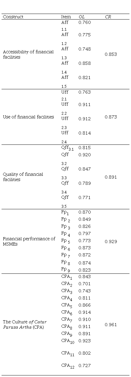 The results of the pilot test for construct validity, presented in Table 2, indicate that the research instrument possesses a loading factor value exceeding 0.70, thereby confirming the applicability of all instruments in this study. The pilot construct reliability test indicates that Cronbach's Alpha (α) exceeds 0.70, so the study data is deemed very trustworthy for inclusion in the data analysis procedure. The outcomes of this test can establish a robust foundation for creating a CPA culture measurement tool, which will be applied in the principal study.