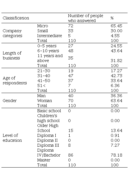 The number of samples based on age is dominated by MSME owners aged 31-40, totaling 47 (42.73%). This suggests that entrepreneurial interest in Bali is primarily driven by millennials, who tend to exhibit a greater propensity for risk-taking. Based on gender, women dominate export-oriented MSMEs, comprising 63.64% of respondents compared to 36.36% for men. This trend signifies a growing number of female entrepreneurs in the export-oriented MSMEs sector across Bali Province. Finally, the respondents' profiles, based on education level, are primarily comprised of respondents with Diploma IV/Bachelor's degrees, at 78.18 per cent. This indicates the significant role of higher education in the success and sustainability of MSME actors.