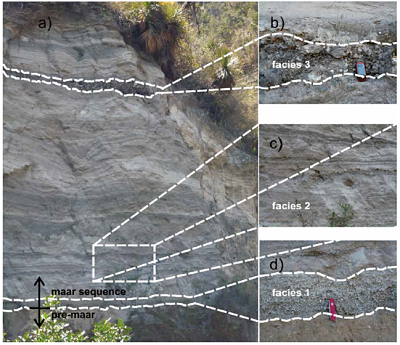 Keywords: maar volcanoes, ballistic blocks, eruptive locus migration, depositional facies.