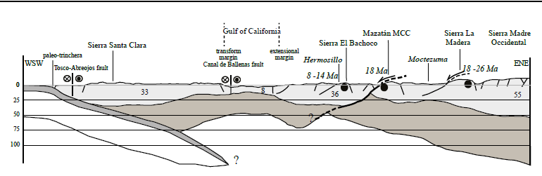 Gans, P.B., 1997, Large-magnitude Oligo-Miocene extension in southern Sonora: Implications for the tectonic evolution of northwest Mexico: Tectonics, 16, 388-408.