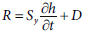 The expression used in the method assumes that temporal waterlevel changes of an aquifer are controlled by the recharge balance R (mm/year) and the net drainage of groundwater D (mm/year) at a given observation point for a certain period of time, t. The recharge can be calculated as: