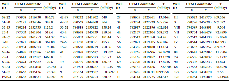 Unfortunately, as in many cases, not all the wells have complete data that could be used for direct application of the method, thus, a classification of the wells was performed in order to discard those without sufficient information. To determine which and how many wells would be included in the study, we first considered those active during 2015, recalling that this is the most recent year of the analysis period. The availability of regular measurement records was also considered. In some cases, the missing data was completed by applying one of four statistical methods according to the amount of missing data and the location of the well in the valley. The methods applied were linear regression, neighborhood averages, average ratios and the correlation method. As a final analysis, 145 wells were used for the application of the WTF technique.