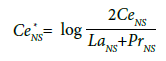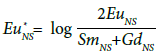 Las anomalías de Ce (Ce*) y Eu (Eu*) en aguas subterráneas, para los valores normalizados a Lutita (en las fórmulas se usará la convención NS) fueron cuantificadas considerando la razón entre el valor obtenido de Ce y Eu con respecto a su valor esperado dada la tendencia de los ETR inmediatamente adyacentes, mediante las ecuaciones 1 y 2 respectivamente (Johannesson et al., 2005).