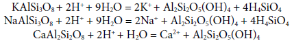 Las concentraciones tan bajas de los ETR en el agua subterránea (del orden de picomoles a algunos nanomoles por litro) no provocan un aumento considerable en la actividad de H+ y por tanto tampoco generan una disminución significativa del pH. En cambio, uno de los mecanismos que puede contribuir en el aumento del pH, que es viable desde el punto de vista hidrogeológico de la zona y que concuerda con los índices de saturación de feldespatos y arcillas en las muestras de agua analizadas (Tabla 4), es una disolución intensificada de feldespatos, bajo las reacciones: