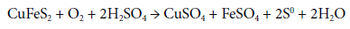 According to Dutrizac (1981) and Watling et al. (2009), oxidation of chalcopyrite in sulfuric acid media is expressed as the series of equations 1,2,3: