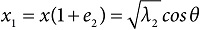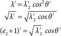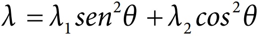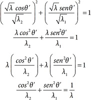 (6)Esta ecuación expresa la extensión cuadrática de la línea tomando como referencia el ángulo θ en un estado no deformado. Sin embargo, en este estado es difícil conocer θ, por lo que es conveniente expresar λ en términos de θ', como se muestra a continuación. Si despejamos cosθ y senθ de las ecuaciones 4 y 5 tenemos que: