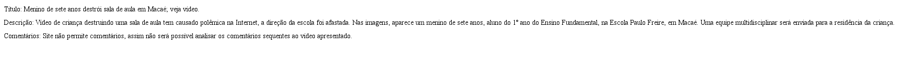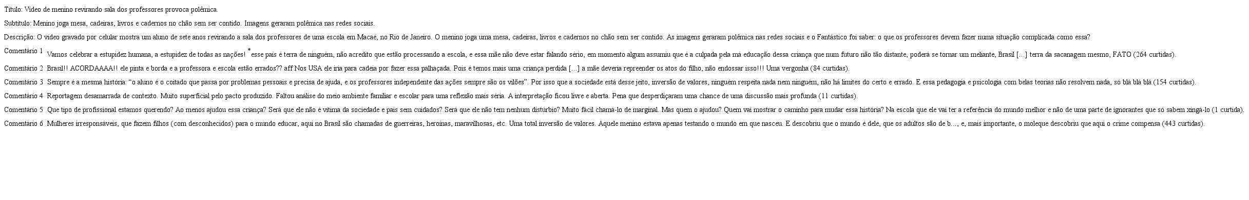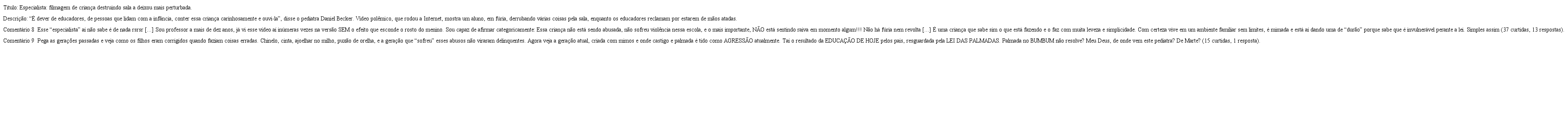 [...] essa criança não está sendo abusada, não sofreu violência nessa escola, e o mais importante, NÃO está sentindo raiva em momento algum!!! Não há fúria nem revolta [...] É uma criança que sabe sim o que está fazendo e o faz com muita leveza e simplicidade (Comentário 8).