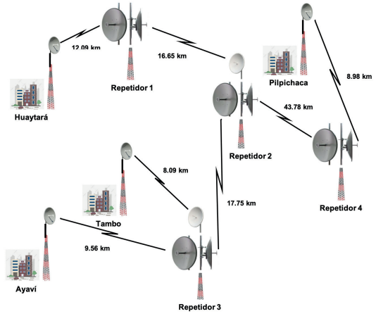 En este contexto, se ha llevado a cabo el estudio y diseño de una red inalámbrica de banda ancha para interconectar los distritos de Pilpichaca, Huaytará, Ayaví y Tambo con la finalidad de que tengan acceso a internet y a la telefonía IP, principalmente las instituciones educativas, centros de salud, puestos policiales y comunidades campesinas. No obstante, se tendría que evaluar las tecnologías de comunicación inalámbrica de gran performance para la red de transporte (WMAN) para interconexión de los distritos, y de la red de acceso (WLAN) para la conectividad de los usuarios de un determinado distrito.