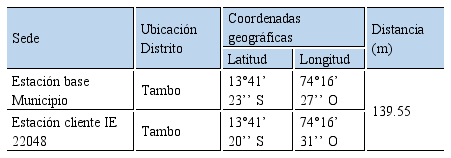 Distancia del radioenlace punto a punto: Municipio Tambo (IE 22048)