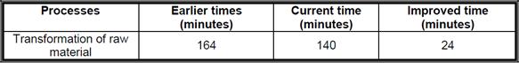 Table 3 shows the improved time of 24 minutes in the entire production cycle, after implementing the methodology 5 S and after eliminating all ways of waste and excess of inventory thanks to principles of JIT in the process of transforming raw materials.