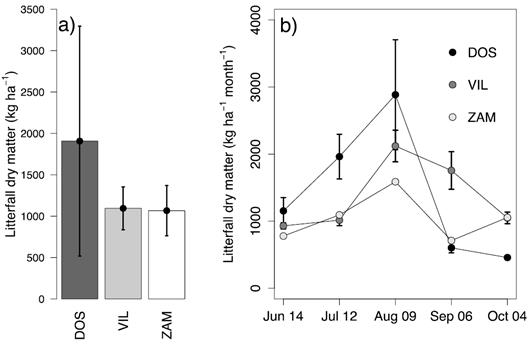 Chave, J., Navarrete, D., Almeida, S., Álvarez, E., Aragão, L., Bonal, D., Châtelet, P., Silva-Espejo, J., Goret, J., von Hildebrand, P., Jiménez, E., Patiño, S., Peñuela, M., Phillips, O., Stevenson, P. & Malhi, Y. (2010). Regional and seasonal patterns of litterfall in tropical South America. Biogeosciences, 7(1), 43-55. doi:10.5194/bg-7-43-2010