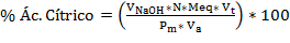 Meq = Miliequivalentes del ácido cítrico (0.064)