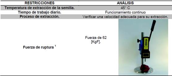 Verificar especificaciones y restricciones técnicas del sistema de extracción, en base a las características de las semillas.