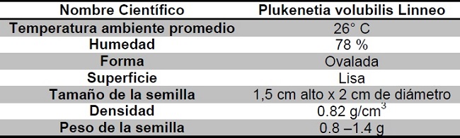 La semilla de Sacha Inchi proviene de una planta nativa de rápido crecimiento de la Amazonía de Perú y Ecuador en alturas desde 100 m.s.n.m. en la selva baja hasta los 2000 m.s.n.m. y en la selva alta. Esta planta requiere de abundante agua para tener un crecimiento sostenido; es mejor si las lluvias se distribuyen en forma uniforme durante los 12 meses (850 a 1000 mm), luz, humedad y suelos con adecuado drenaje. (Hurtado, 2013) (Valenzuela A., Valenzuela R., 2014). En la Tabla 1 se detallan las características básicas de la semilla.