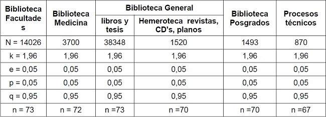 En la Tabla 1 se presentan los cálculos del tamaño de muestra para cada biblioteca.
