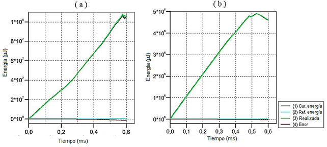 Posteriormente, se realizaron simulaciones de ensayos por FEM con el fin de comparar los resultados con el ensayo físico. El software ANSYS SpaceCLAIM fue empleado para obtener los ensayos de tracción. Además, se generó un modelo matemático mediante el software Explicit Dynamics de ANSYS, para determinar parámetros ingenieriles cuando la probeta sea sometida a una fuerza uniaxial y se genere un esfuerzo por tracción (Gladman, 2007). Se realizó el proceso de simulación en el módulo Autodyn y se obtuvieron los resultados esperados los cuales han sido procesados y se entregan curvas de parámetros, así como interpretación de las mismas. Se definió un tipo de malla cuadrilateral con un tamaño de elemento 2.008860 mm y un tamaño mínimo de malla de 0.50 mm con un número de nodos de 2,585 y un número tal de elementos de 2,479. El modelo matemático de Flanagan Belytschko fue utilizado para el análisis dinámico para proporcionar estabilidad a los elementos no lineales (Belytschko, Liu, Moran, & Elkhodary, 2013; Flanagan & Belytschko, 1981). Los resultados fueron verificados con la relación de energía de Hourglass con la energía interna generada en el modelo dando un valor de 0.75%, porcentaje válido ya que según la base teórica este valor debe ser menor al 10% (Flanagan & Belytschko, 1981).