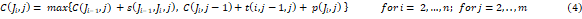 La Tabla 2 es interpretada como el tiempo que necesita un trabajo en procesarse en cada una de las máquinas. Por ejemplo, el trabajo J0 necesita 10, 15, 8, 12 y 6 unidades de tiempo para procesarse en cada una de las 5 máquinas. Por su parte, la Tabla 3 muestra el tiempo que necesita cada máquina para ser liberada al comienzo de la planificación de la producción. En la Tabla 4 se detallan los tiempos de configuración dependiente de la secuencia. Esto significa, por ejemplo, que si la máquina M0 procesa al trabajo J0 y luego debe procesar al trabajo J1, necesitaría 2 unidades de tiempo para configurar la máquina antes de procesar a J1. Por último, en la Tabla 5 se muestran los tiempos de transportación de los trabajos desde una máquina hacia la otra. Por ejemplo, para trasladar el trabajo J0 desde la máquina M0 hacia la máquina M1, se necesitan 8 unidades de tiempo, de M1 hacia M2 se necesitan 7 unidades de tiempo y así sucesivamente. En la tabla solo se muestran los valores para las primeras cuatro máquinas debido a que en la última etapa (M5) el trabajo culmina su procesamiento.